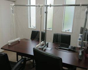 また、感染拡大防止のために、入所時のアルコール消毒、面談時のマスク着用及び飛沫感染防止シートの利用など、安全対策を実施しております。